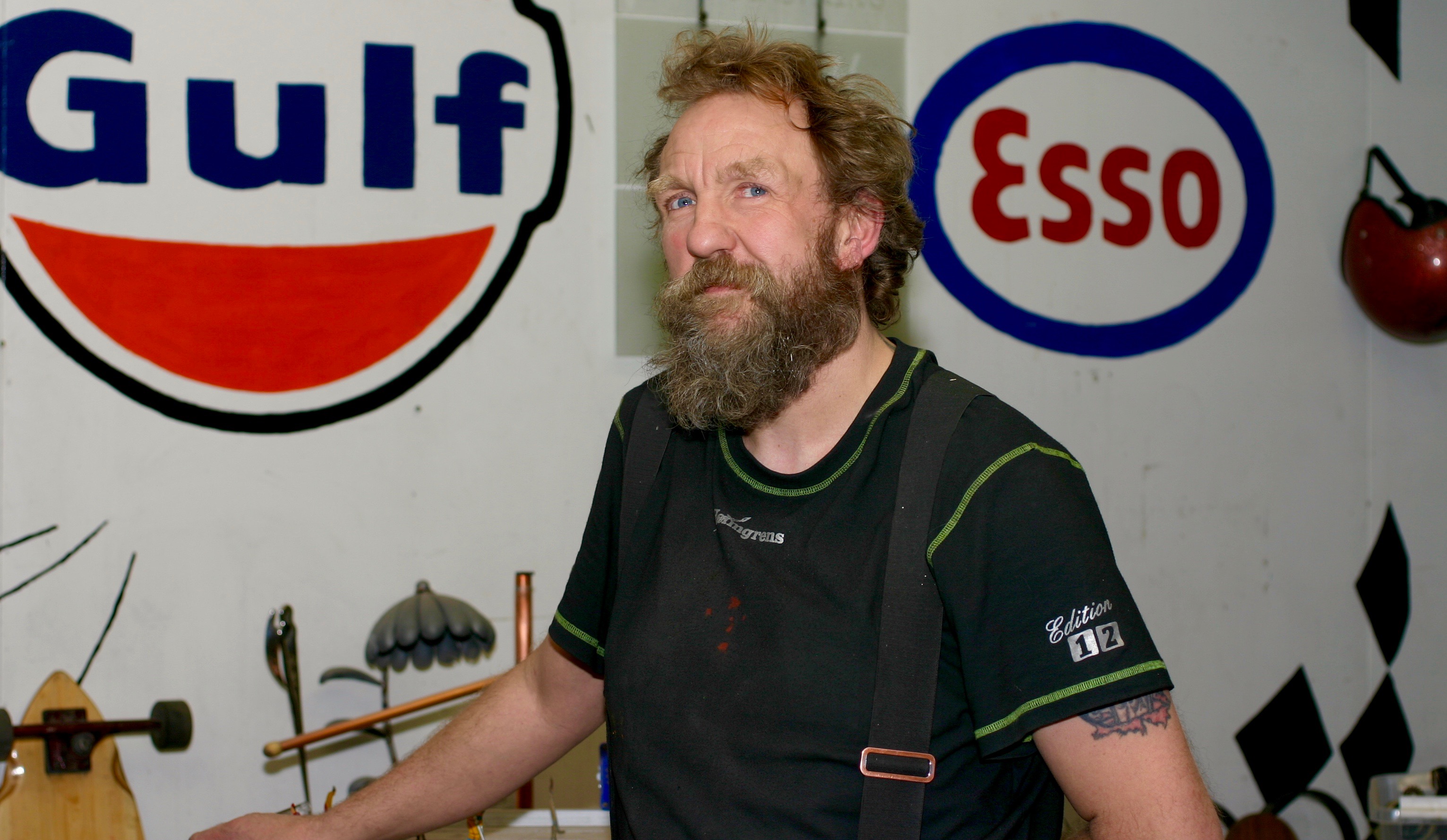 Johnny Persson driver Valla sandblästring tillsammans med sin son och mor. Johnnys passion för motorhistoria genomsyrar lokalerna på Värmbols industriområde.