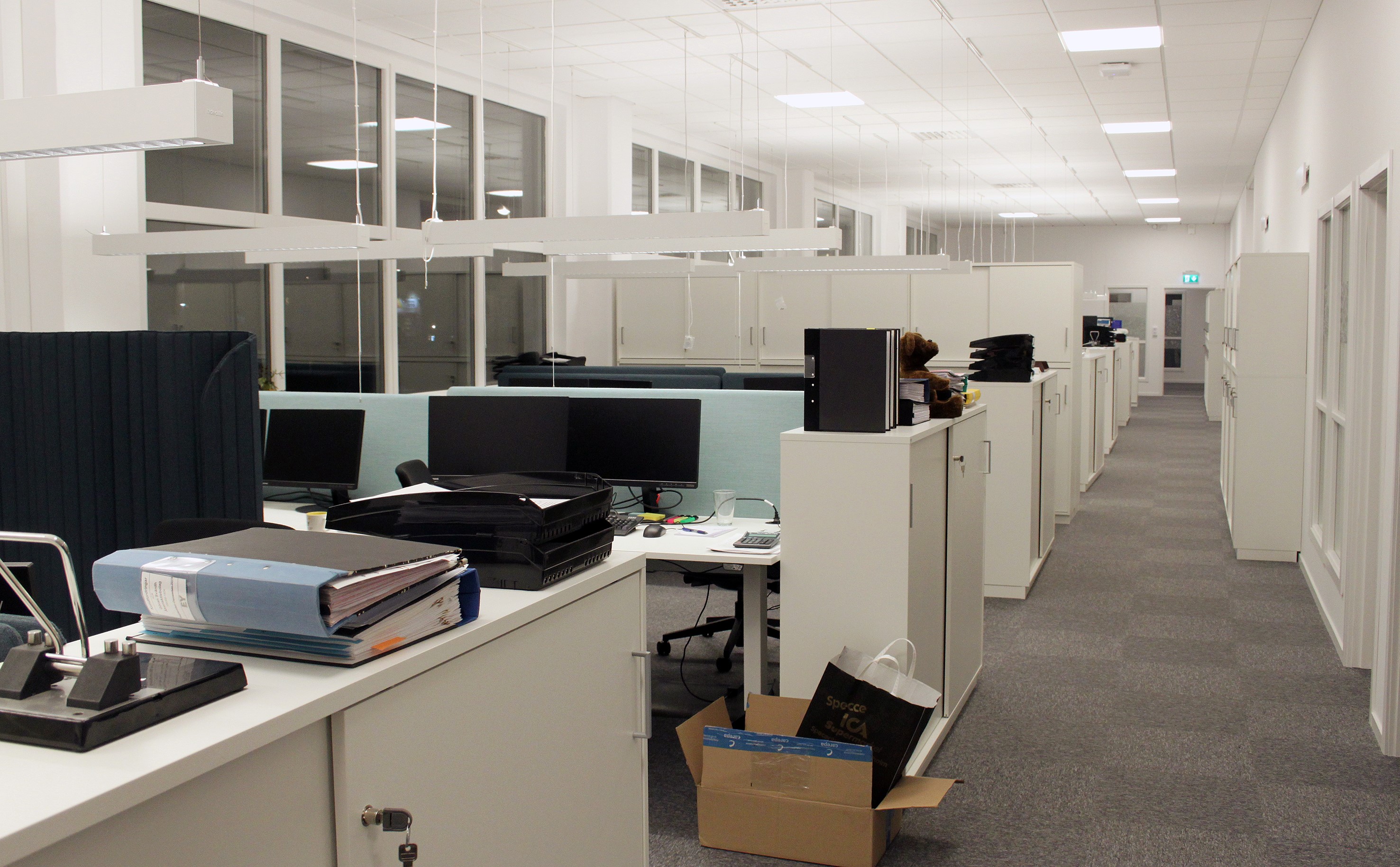 En stor förändring för de anställda är givetvis att de enskilda kontorsrummen bytts ut mot ett öppet landskap.